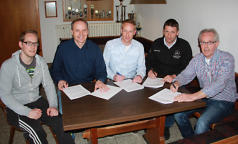 Liebe Vereinsmitglieder,nachdem es in den vergangenen Jahren bzw. Jahrzehnten immer wieder fruchtlose Verhandlungen über eine Fusion der Fußball-Abteilungen des SV Kirchboitzen, des TSV Nordkampen und des SV Vethem gegeben hatte, wurde im Sommer 2012 ein neuer Anlauf zu einer solchen Fusion genommen.Diese führte im vergangenen Jahr bereits zur Bildung einer Spielgemeinschaft zwischen dem SV Kirchboitzen und der FG Vethkampen auf Kreisebene.Dies war aber nur als Zwischenschritt gedacht. Nachdem alle beteiligten Vereine ihre Zustimmung zu der geplanten Fusion gegeben hatten, wurde der Zusammenschluss der Fußball-Abteilungen der drei Vereine zum 01. Juli 2015 Wirklichkeit.Nachdem auch der Niedersächsische Fußballverband seine Zustimmung zu dieser Fusion gegeben hat, lautet der Name unserer Spielgemeinschaft - in Anlehnung an unsere bisherige Jugendspielgemeinschaft - SG Nordheide.In dieser Spielgemeinschaft sind alle Mannschaften - egal ob jung oder alt - versammelt. Da die SG Nordheide ein eingetragener Verein ist, verfügt sie auch über einen eigenen Vorstand (siehe Ansprechpartner).Die Bedingungen der Spielgemeinschaft wurden zwischen den drei Stammvereinen der SG Nordheide in einem Kooperationsvertrag ausgehandelt und in den jeweiligen Jahreshauptversammlungen von ihren Mitgliedern bestätigt.Für die Mitglieder des SV Kirchboitzen sind die formellen Auswirkungen eher gering. Die Spielerpässe müssen erneuert werden. Die Fusion beinhaltet zudem, dass alle aktiven Fußballer neben der Mitgliedschaft beim SV Kirchboitzen auch Mitglieder in der SG Nordheide werden. Natürlich mit vollem Stimmrecht.Finanzielle Auswirkungen für unsere Mitglieder ergeben sich dadurch nicht. Alle Kosten, die durch die Mitgliedschaft in der SG Nordheide entstehen, werden durch den SV Kirchboitzen bezahlt, sind also schon im Mitgliedsbeitrag für den SV Kirchboitzen enthalten.Die Erkenntnisse des letzten Jahres haben gezeigt, dass der Schritt zu einer gemeinsamen Fußball-Abteilung mit Nordkampen und Vethem notwendig und sinnvoll war.Der Vorstand des SV Kirchboitzen ist davon überzeugt, dass der Schritt zur SG Nordheide die Gemeinschaft zwischen den drei Stammvereinen weiter stärken und positive Auswirkungen auf die Entwicklung des Vereinsfußballs im Gebiet des Kirchspiels Kirchboitzen haben wird.“Der Vorstand”Am 17.04.2015 wurde in Nordkampen der Kooperationsvertrag zwischen dem gastgebenden TSV, dem SV Vethem und dem SV Kirchboitzen geschlossen. Das war der Gründungsakt für den neuen Fußball-Verein SG Nordheide. Es unterschrieben Rolf Hestermann, Holger Dreyer, Ulf Stöckmann, Helmut Schäfer und Sören Hestermann (v.r.). Es fehlt Bernd Grochotzky. ho/WZ